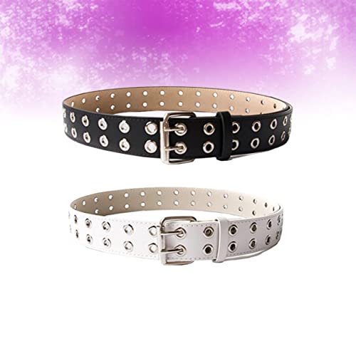 More information about 2pcs Leather Belt for Jeans Men Double Prong Belt Air Hole Minimalist Style Versatile for Both Men Women