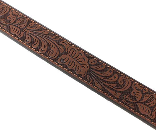 BC Belts Womens Thin Leather Belt Strap with Embossed Western Scrollwork 1" Wide with Snaps 5