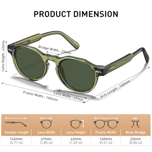 AVAWAY Round Mens Sunglasses Polarized, Italian Acetate UV Protection Retro Middle Sun Glasses Fashion Shades AV2136 1