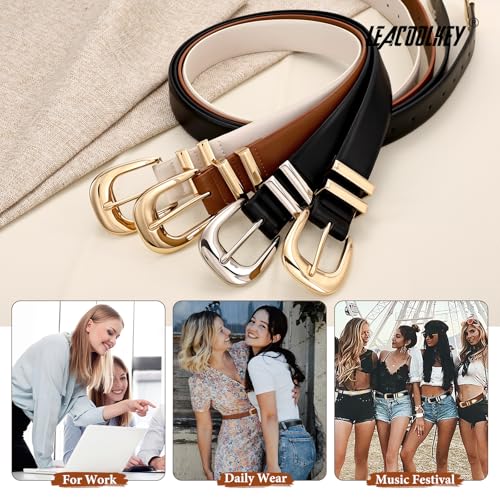 Women Leather Belt Gold Silver Buckle Plus Size Leather Belt for Jeans Dress Fashion Western Belt Width 1.3" 4
