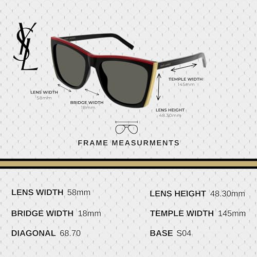 • Perfect Fit: Experience the Perfect Fit with these Saint Laurent sunglasses. Featuring lens dimensions of 58mm width, 48.3mm height, 18mm bridge, and 145mm temple length, these shades offer both style and comfort. Elevate your style with the timeless appeal of these sunglasses, tailored for the modern men and women.