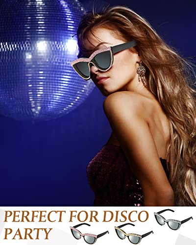 Kanayu 3 Pairs Retro Rhinestone Sunglasses Bling Sunglasses Vintage Frame Eyewear for Women Girls Party, 3 Styles 3
