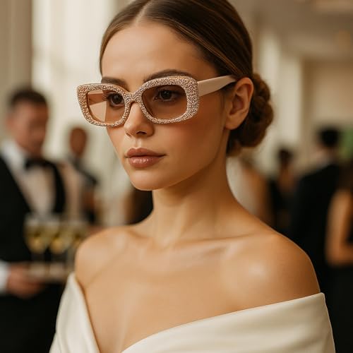 More information about ICARA Fashion Rhinestone Sunglasses Women Crystal Sparkling Diamond Rectanglar UV400 Trendy Retro bling Party Sunglasses
