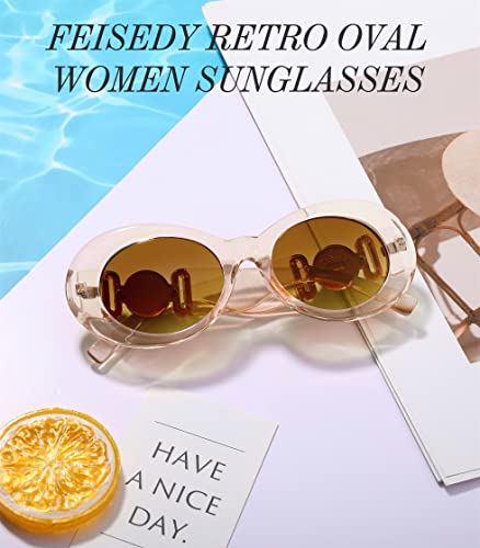 FEISEDY Retro Oval Sunglasses Women Mens 90s Vintage Small Round shades Clout Goggles B2969 5