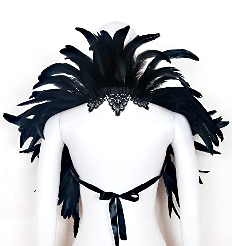 L'VOW Black Feather Shrug Cape Shoulder Wrap Lace Collar Halloween Costumes for Women 6