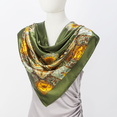 • PRODUCT SIZE - Our like silk square scarf size about 35x35 inches(90x90cm), large enough for you to wear as a headscarf in your hair or on your head to protect your hair from breakage and frizz, as a neck scarf to warm your neck, or as a top. You can also use it as a beautiful handbag accessory to decorate your bag and turn it from casual to elegant