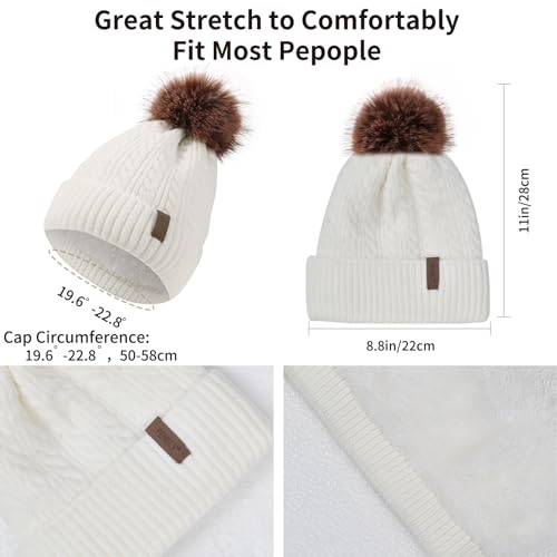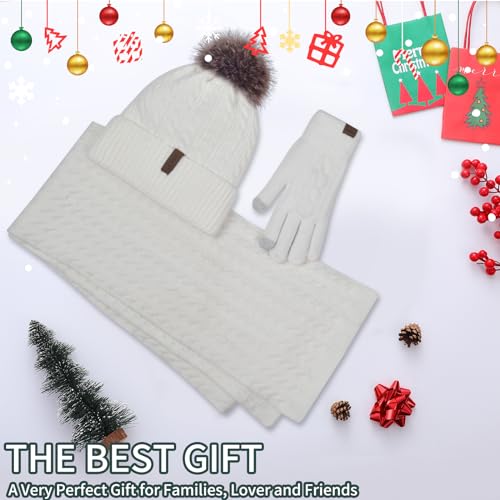 HOT ! Winter Hat Scarf Gloves Set for Women, Classic Cable Beanie with Removable Pom Pom Long Scarf Touchscreen Gloves 3 in 1 Set