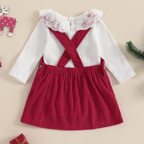 My First Christmas Baby Girl Outfit Rib Knit Lace Romper Santa Corduroy Suspenders Dress Infant Fall Winter Clothes 6