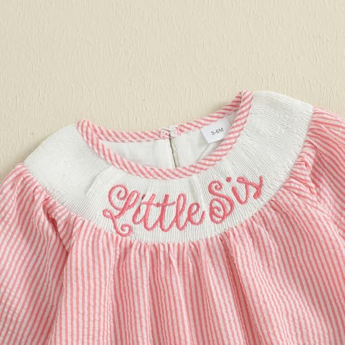 Little Sister Newborn Outfit Infant Girl Gingham Romper Embroidery Letter Smocked Long Sleeve Seersucker Jumpsuit 6