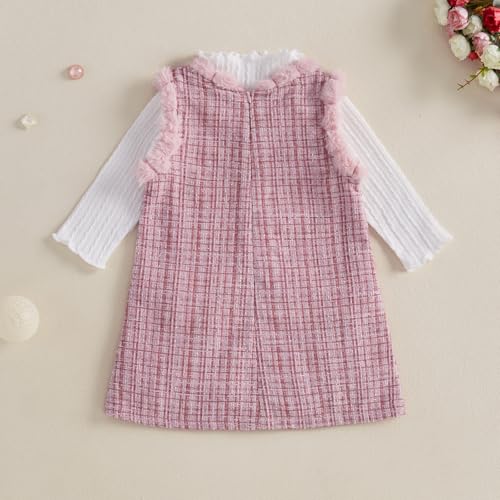 • Feature: 2Pcs Toddler Baby Girl Long Sleeve Ribbed Knitting Pullover Shirt + Back Zipper Plush Crew Neck Sleeveless Tweed Plaid Dress Bow Side Pockets Straight Dress Coat Autumn Winter Clothes Sets, Easily Match Any Outfits
