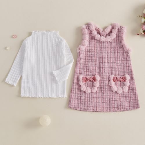 • Package Include: 1 x Shirt + 1 x Dress. Fashion Baby Girls Princess Clothes Set, Long Sleeve High Necked Pullover Sweater + Sleeveless Plush Bowknot Pockets Plaid Dress 2Pcs Outfits Set, Suitable for Winter, Spring and Fall