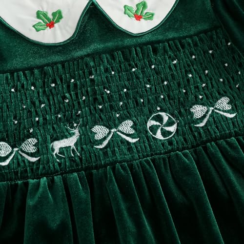 • Design: Christmas dresses for girls, features doll collar, long sleeve, smocked bust, and a-line design, christmas velvet dress, paired with reindeer bow embroidered pattern for adding a touch of cuteness to your girls