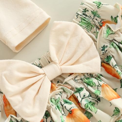 • Features: Baby girl halloween outfit, newborn halloween outfit girl, baby girl fall romper, letter print long ruffle sleeve round neck romper, pumpkin print skirt with bow tie, pumpkin print headband, pair of solid socks. The whole set is very beautiful and boutique