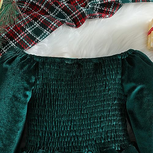 IBAKOM Toddler Baby Girl My First Christmas Romper Velvet Smocked Fall Winter Dress Kids Christmas Birthday Dress 4