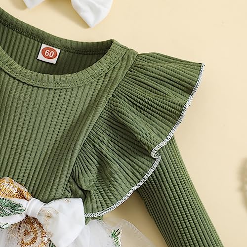 MERSARIPHY Infant Baby Girl Romper Dress Pleated Ribbed Romper Floral Lace Dress Baby Girl Christmas Clothes 3