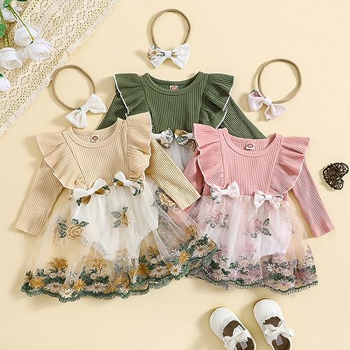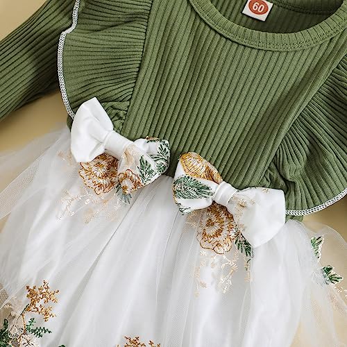 MERSARIPHY Infant Baby Girl Romper Dress Pleated Ribbed Romper Floral Lace Dress Baby Girl Christmas Clothes 6