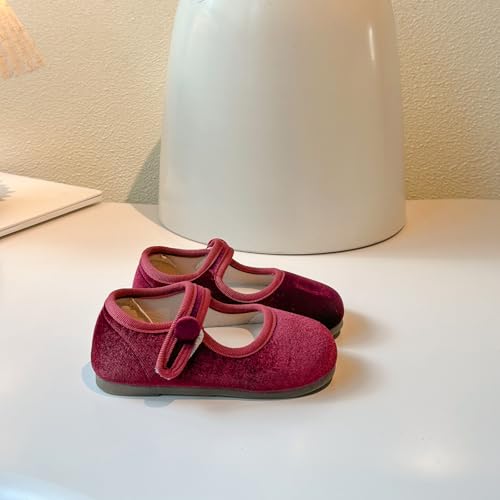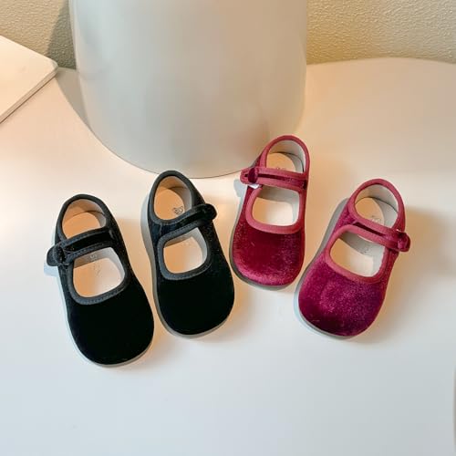 HOT ! Toddler Mary Jane Shoes, Velvet Ballet Flats, Black and Burgundy, 2-Pack