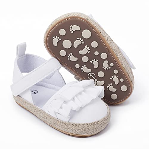 Baby Boy Girl Sandals Infant Shoes First Walkers Prewalkers Ruffles Non-Slip Soft Sole Prewalker (White, 11 Infant) 6