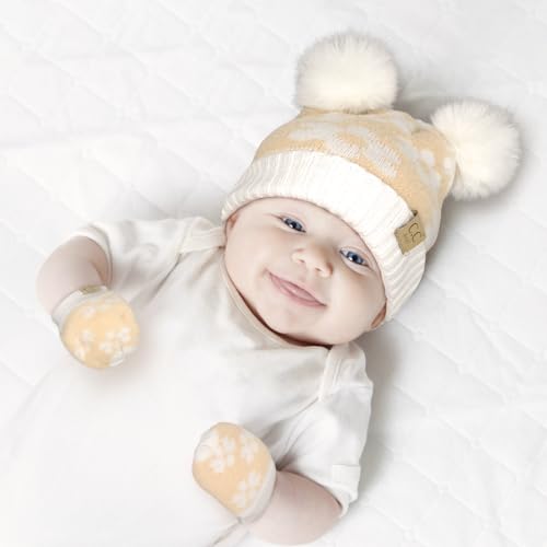 HOT ! C.C. Baby Daisy Double Knit Skully Beanie and Gloves Set for Toddler with Faux Fur Pom Pom