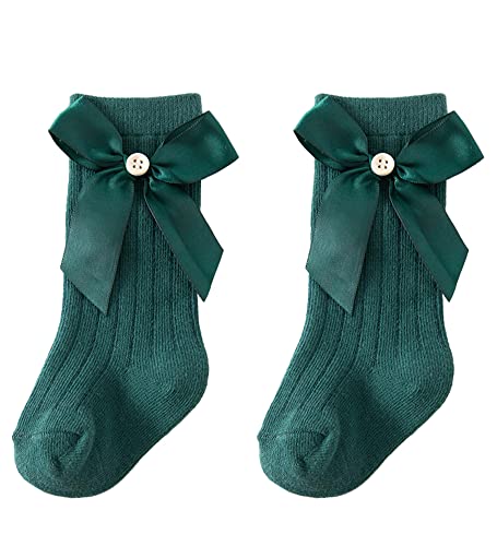 QandSweet Baby Newborn Knee High Socks Seamless Toddler Girls' Big Bow Button Cotton Stockings 6