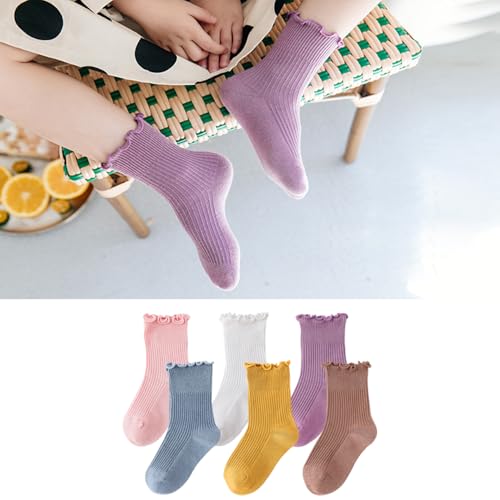 DEEKEY Baby Girls Socks Toddler Ruffle Socks Girls Frilly Lace Dress Socks Cotton Crew Socks 6