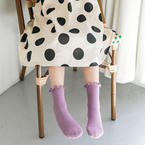 DEEKEY Baby Girls Socks Toddler Ruffle Socks Girls Frilly Lace Dress Socks Cotton Crew Socks 7