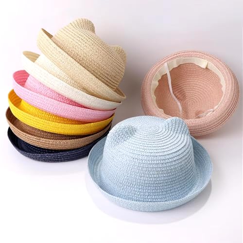 Toddler, Preschooler, Children, Kids Cat Ear Straw Bucket Sun Hats, Assorted Colors Multicolor 5