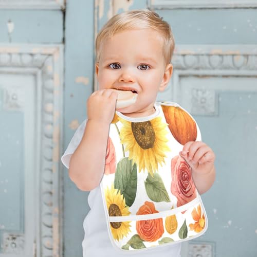 • DESIGN:Button with 3 types adjustment, adjustable and comfortable to wear. Fits infant, baby, toddler boys and girls from 6 months to 36 months.The girls teething bib has a large and stable pocket, which can easily grasp the food, will not overflow. Protect children's clothes from stains. Keep the floor and furniture clean!