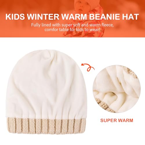 Toddler Winter Beanie Hat, Infant Winter Warm Knit Fleece Lined Cap for Girls Boys with Pom Pom for 0-36 Months 2 Packs 4