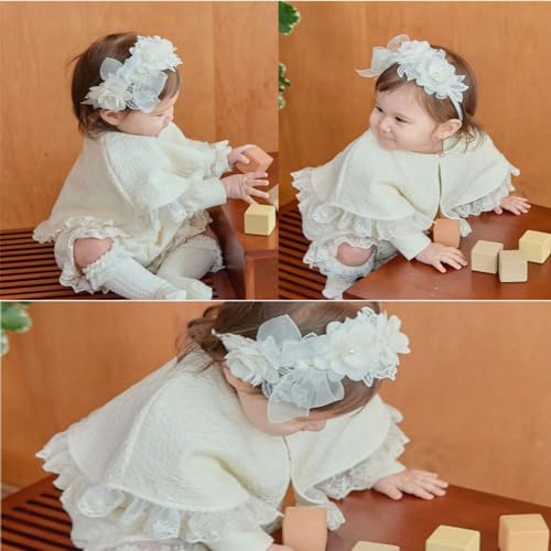 More information about Baby Girl Headband Floral White Lace Baptism Christening Hairband Elastics Soft Head Wrap for Toddlers Hair Accessories for Infants Kids Shower Birthday Wedding Party (Style 12)