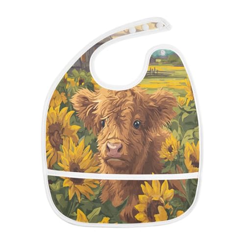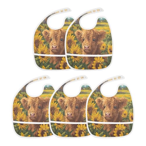 MCHIVER Yellow Sunflowers Cow Baby Bibs for Boys Girls Toddlers Waterproof Feeding Bib Apron with Food Cather Adjustable Cotton Food Eating Bib 2 Pack 5