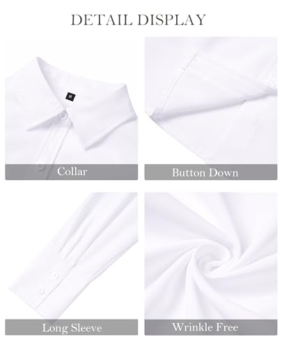 • Wrinkle-Free & No-Iron Convenience:Crafted from wrinkle-free poplin, this long sleeve shirt stays crisp and smooth without the need for ironing. Whether you're rushing to a meeting, working as a server or waitress, or attending a funeral or church service, it keeps you looking neat and professional, saving you time and hassle.