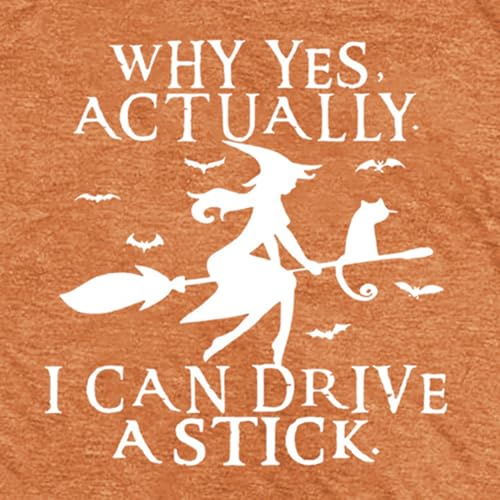 • Design: This women Halloween tee boasts an eye-catching front design with the funny phrase "Why Yes Actually I Can Drive A Stick" and a witch on a broomstick. It fully embodies the Halloween vibe, becoming a wardrobe highlight in the spooky season