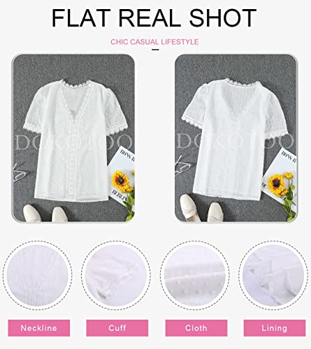 Dokotoo Women's V Neck Lace Crochet Tunic Tops Flowy Casual Blouses Shirts 2