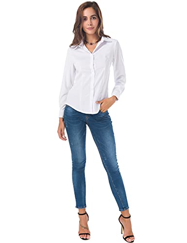 HOT ! Atnlewhi Womens Long Sleeve Button Down Shirts Classic Work Blouse Stretch Formal Casual Dress Shirt