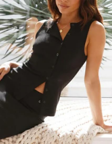 KMBANGI Women Button Down Vest Ribbed Summer Tank Tops Button Up Open Front Rib Shirt Sleeveless Slim Dressy Top Fashion 4