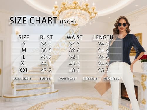• Features: This sparkly tops for women featured flowy 3/4 length sleeve with ruffles, double layers and elegant V-Neck. The unique silver threads weave through the fabric, sparkling under the light, embodying the perfect fusion of elegance and fashion
