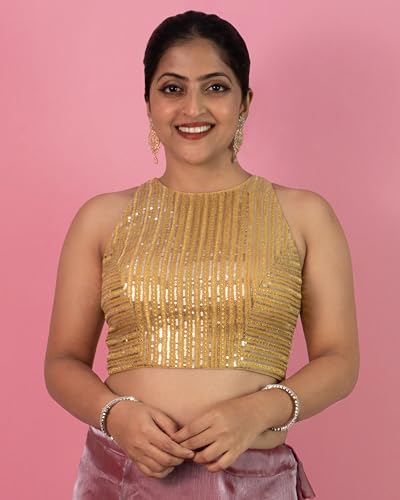 More information about FIGURE'S DESIGNER Women's Sequin Embroidered Round Halter Neck Sleeveless Readymade Saree Blouse E2
