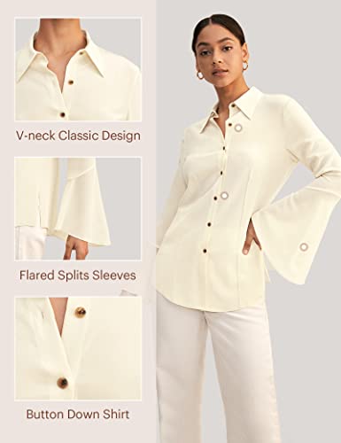 • CLASSIC & NOVEL: Innovate on the classic version. Flared sleeves are inspired by blooming calla lilies and add the perfect touch of romance to your summer ensemble. A pleated back adds elegance, while a front tuck detail promises style from every angle. The classic shirt style makes this button down tops easy to match