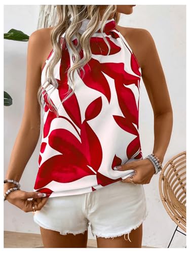 HOT ! SweatyRocks Women's Boho Printed Halter Top Tie Mock Neck Sleeveless Blouses