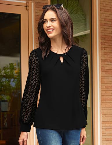HOT ! GRACE KARIN Women Lace Long Sleeve Shirts Dressy Business Casual Blouses Crew Neck Work Tops Fall Clothes
