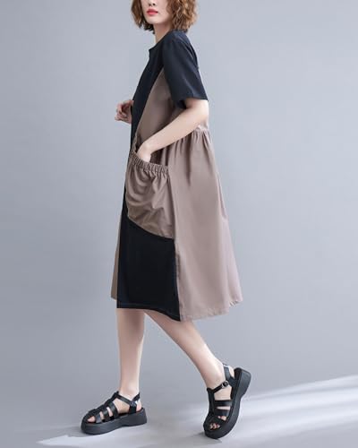 • Features: This t-shirt dress features color block patchwork, Black, modest style, tunic, short sleeves with pockets. Flowing Hem Make it Cute and Elegant. Long Windbreaker or Jacket Can Be Matched In Spring and Summer to Complete a Stylish Layered Look.