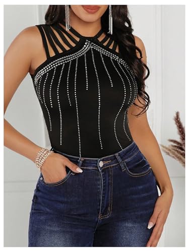 More information about SOLY HUX Women's Tank Tops Sparkle Rhinestone Cut Out Sleeveless Slim Fit Party Top