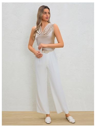 MakeMeChic Women's Satin Silk Tank Tops Cowl Neck Sleeveless Camisole Tops Dressy Shirts 5