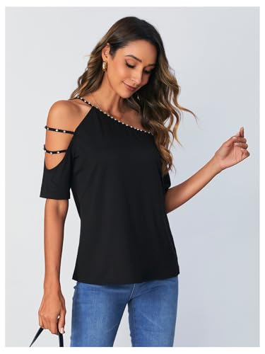 SOLY HUX Women's Cut Out Off Shoulder T Shirt Short Sleeve Rhinestone Tee Tops 5
