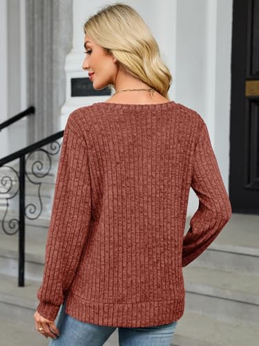 Long Sleeve Shirts for Women Henley Tunic Tops V Neck Casual Fall Top Loose Fit Pullover Sweaters Fashion Clothes 6