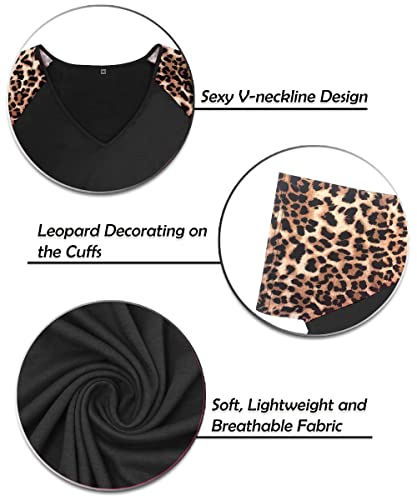 • ★【Features】Raglan short sleeves with color block design, sexy lace sleeve ,with leoaprd print which makes this plus size t-shirts stylish and fashion!