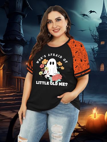 Plus Size Halloween Shirts for Women Pumpkin Graphic Tshirt Fall Casual Short Sleeve Tee Tops 6