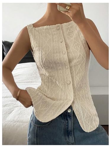 HOT ! MakeMeChic Womens Vest Top Trendy Button Up Tank Tops Asymmetrical Y2k Going Out Top