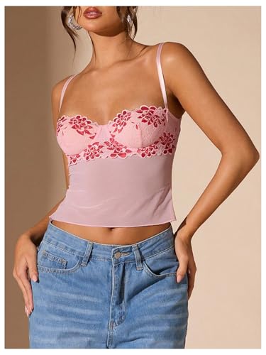 • Features: This cami crop top features a delicate floral lace design, hook and eye back with a low cut neckline and skinny fit for a flattering and feminine look